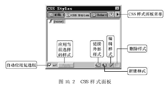 在菜單欄中選擇“Window"→“CSS Styles"命令(或單擊微型啟動面板上的圖標),打開css樣式面板,如圖所示。