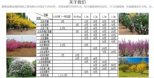 我公司目前是全國**的玫瑰紅紫薇種植地之一,公司有苗圃約5000余畝,主要經(jīng)營叢生、獨(dú)桿、高桿以及造型玫瑰紅紫薇及少量紅火箭、紅火球紫薇等不同類型及規(guī)格的苗木。主要產(chǎn)品有叢生玫瑰紅紫薇、叢生石榴、叢生木槿、叢生紫荊、叢生丁香、叢生臘梅、叢生榆葉梅、叢生黃刺玫、叢生結(jié)香、叢生金銀木、叢生紅瑞木、叢生連翹、叢生貼梗海棠、叢生紅梅、叢生美人梅、叢生接骨木等花灌木,主要規(guī)格為冠幅1.5m、1.8m的工程用苗和苗圃規(guī)劃用苗。公司還提供2018年叢生類花灌木的較新價(jià)格。
