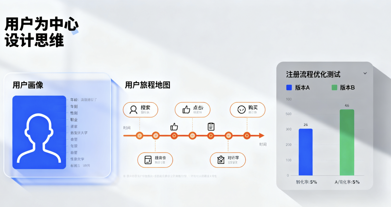 高轉(zhuǎn)化率網(wǎng)站的首要法則,是徹底讀懂目標(biāo)用戶。設(shè)計(jì)前,必須深入研究用戶需求、痛點(diǎn)與行為模式。